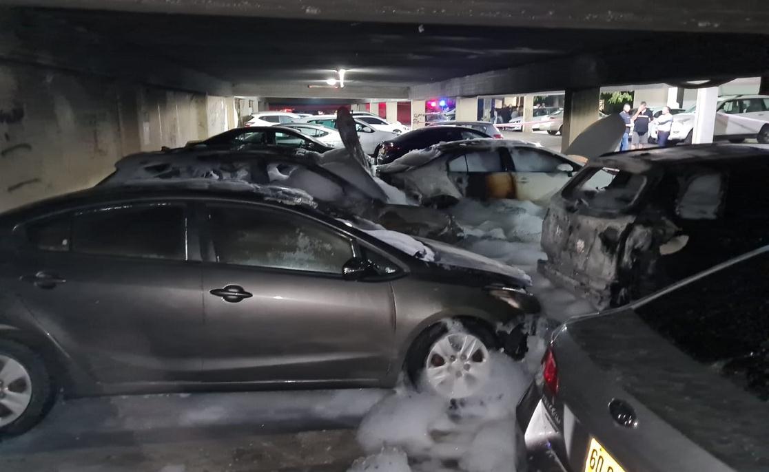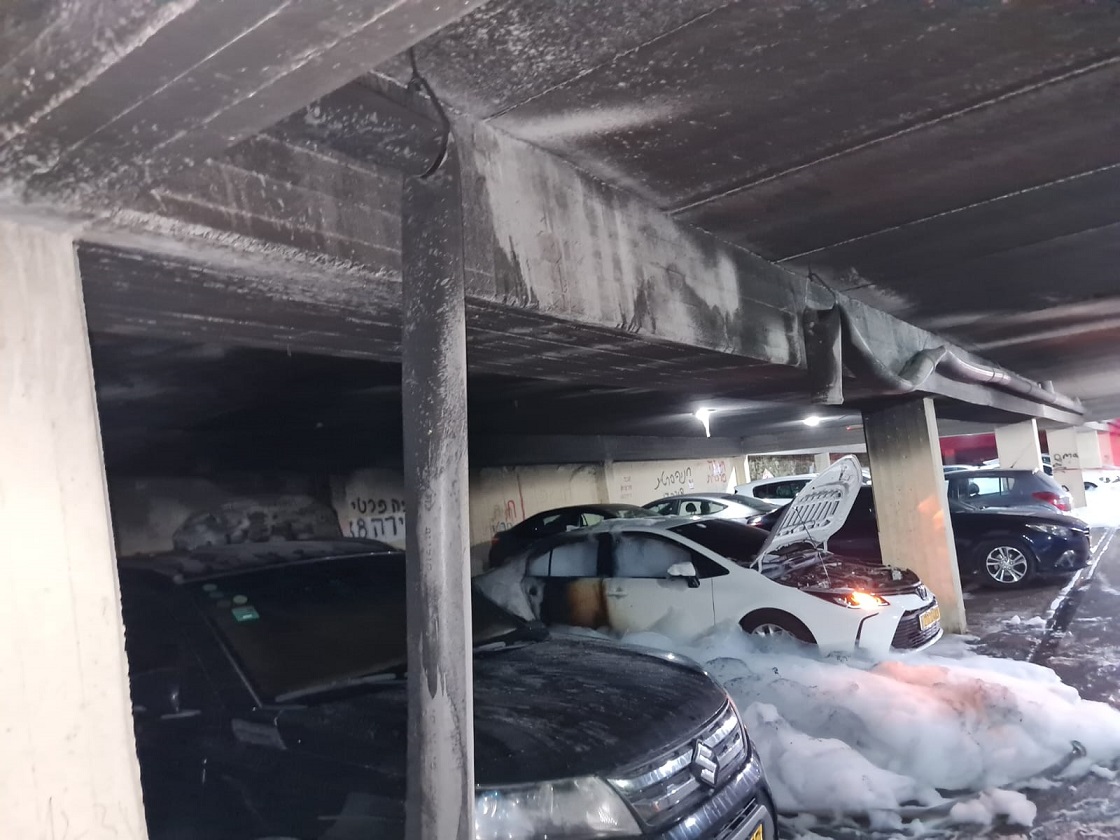 בחצות הלילה התקבלה הודעה במוקד 102 של משל'ט צפון על שריפת 4 רכבים 1 היברידי בחניון 2 קומות. למקום הוזנקו 2 צוותים ורכב אספקת מים בפיקודו של סגן מפקד המשמרת רשף עומר אשכנזי.