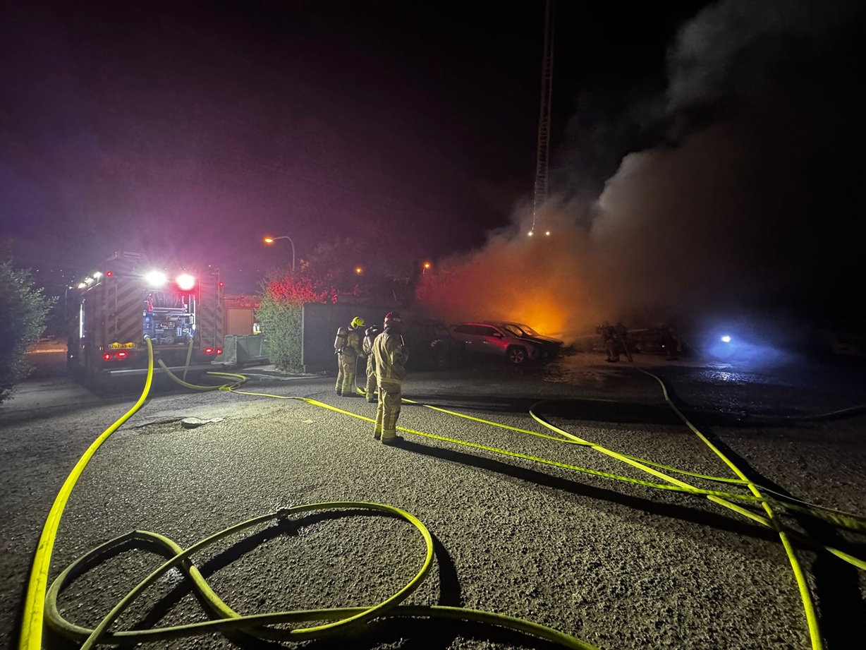 במקום בערו מספר רכבים (לפחות שבעה) בתוך מתחם מוסכים, כוחות גדולים הוזנקו והגיעו במהירות למקום.