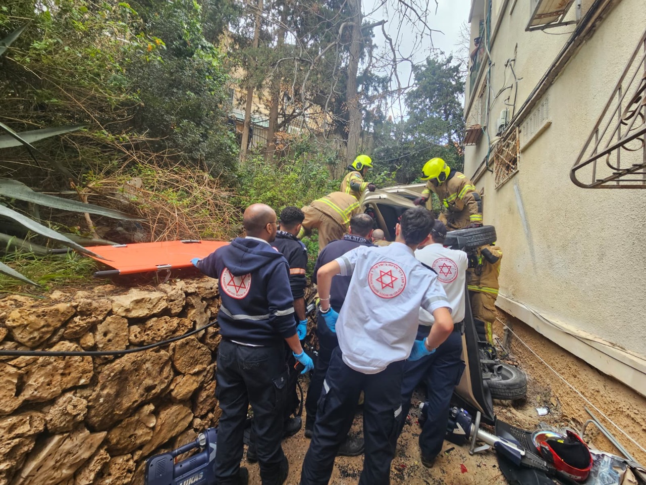 פרמדיקים במד"א מנואל כנען ומוחמד עיסא, סיפרו:"כשהגענו למקום ראינו רכב שהתדרדר מספר מטרים ונפל לתוך חצר בניין מגורים, הוא היה הפוך על צידו עם פגיעות משמעותיות. ירדנו במהירות למקום ותוך כדי פעולות החילוץ של כוחות הכיבוי, הענקנו טיפול רפואי ל-2 נשים שנפצעו באורח בינוני, בניהם נערה בת 16 ולאחר שחולצו, פינינו אותן לבית החולים כשמצבן יציב."