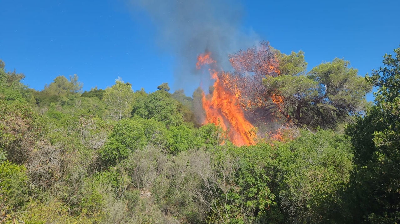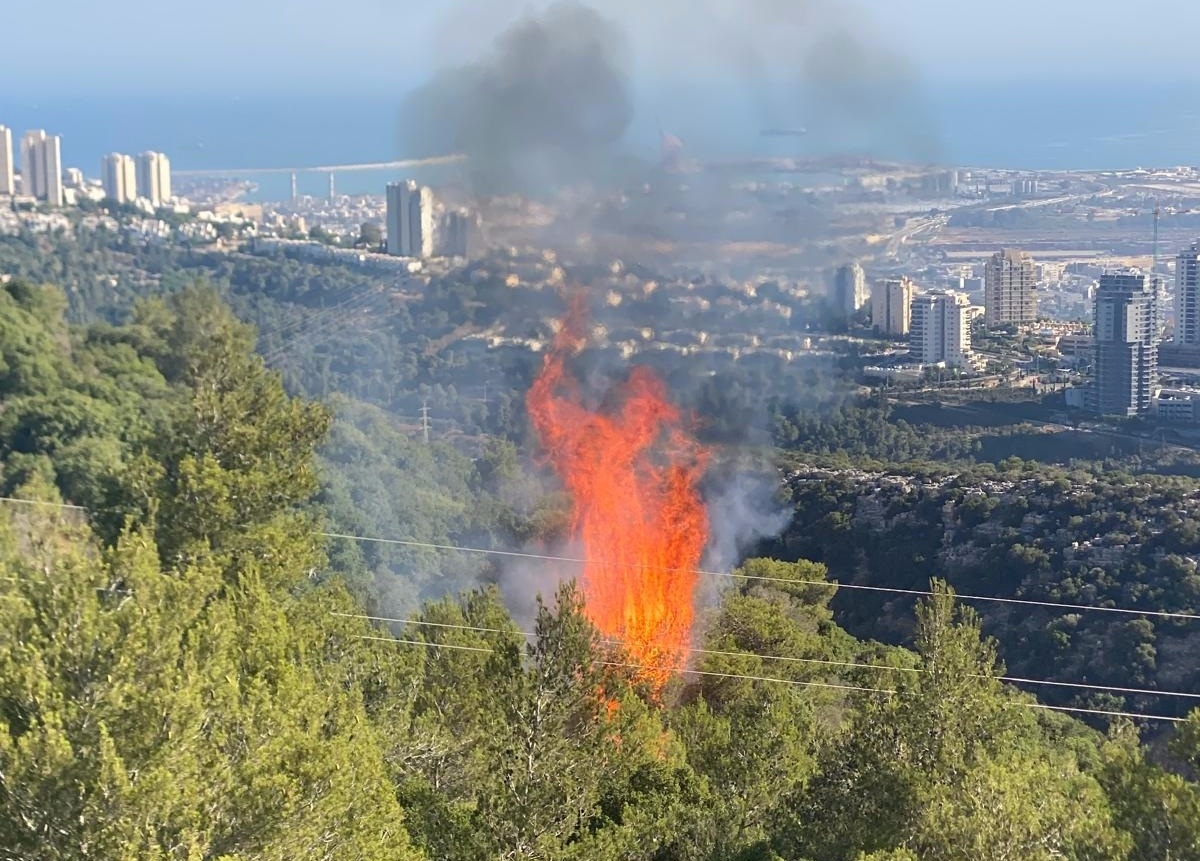 שרפה בשטח פתוח בכרמל כתוצאה משברי אמל''ח