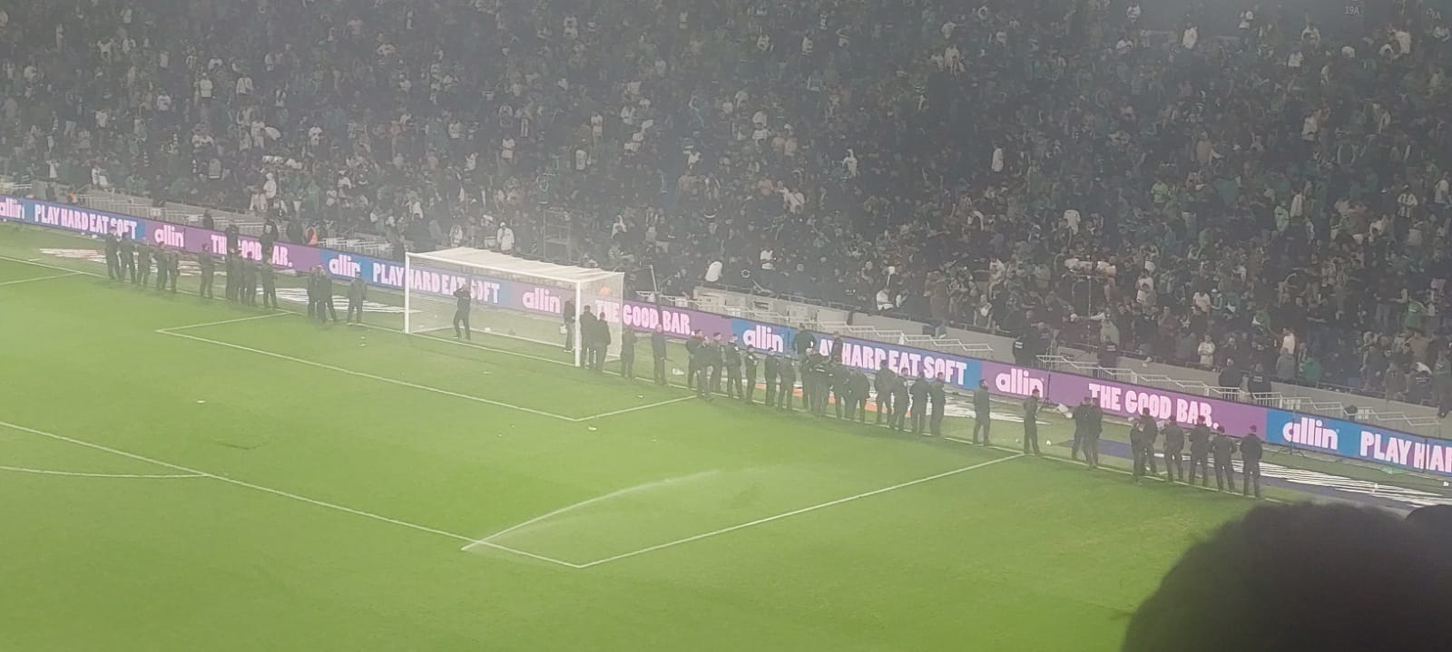 המשחק נעצר מספר פעמים בשל מעשי האלימות, ולבסוף הופסק לחלוטין בתום המחצית הראשונה, מחשש לשלום השחקנים והקהל.