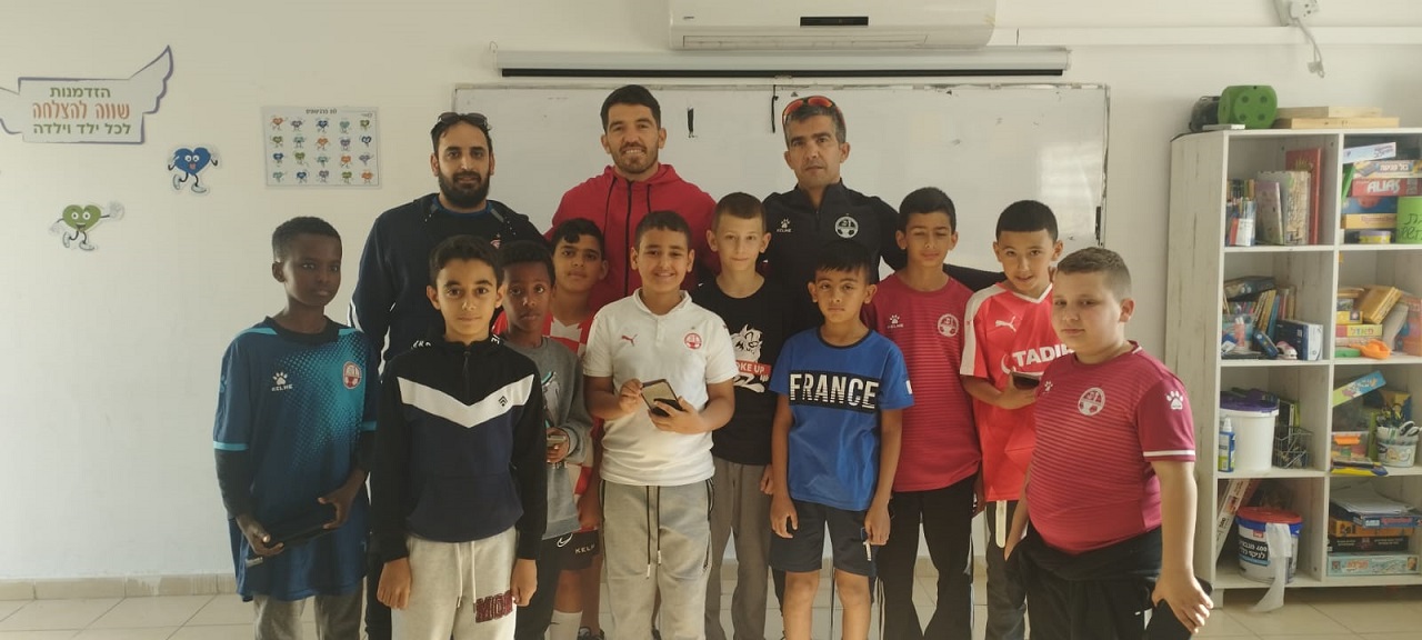 שחקן מועדון הכדורגל הפועל באר שבע אביב סלומון הפתיע בשיחה מרגשת את ילדי פותחים עתיד באר שבע, המשתתפים בחוג הכדורגל עתיד אדום בשיתוף מועדון הכדורגל הפועל באר שבע