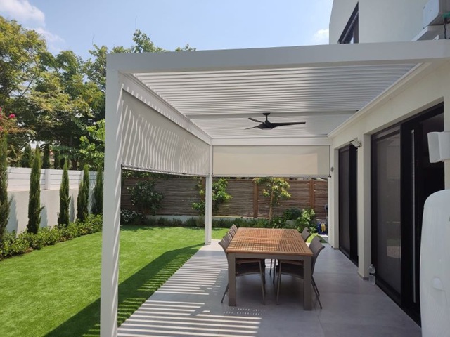 מדובר בפרגולה עם מנגנון פתיחה וסגירה של השלבים בלחיצת כפתור. ביום חם אפשר לסגור ולהצל, וביום נעים לפתוח ולהכניס אור טבעי. יש דגמים עם חיישני גשם ורוח, שמבצעים את ההתאמות לבד.