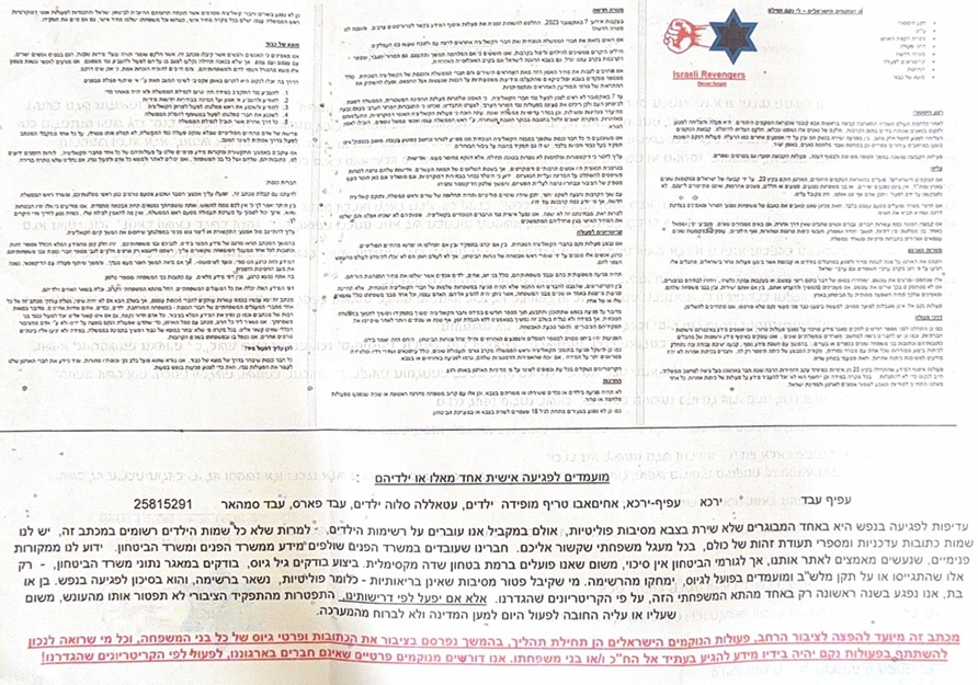 במכתב המאיימים הבהירו : "עדיפות לפגיעות נפש היא באחד המבוגרים שלא שירת בצבא מסיבות פוליטיות. במקביל אנו עוברים על רשימות ילדים. יש לנו שמות כתובות עדכון ומספרי תעודת זהות של כולום, בכל מעגל משפטי שקשור אליכם. חברנו שעובדים במשרד הפנים שולפים מידע משרד הפנים ומשרד הביטחון".