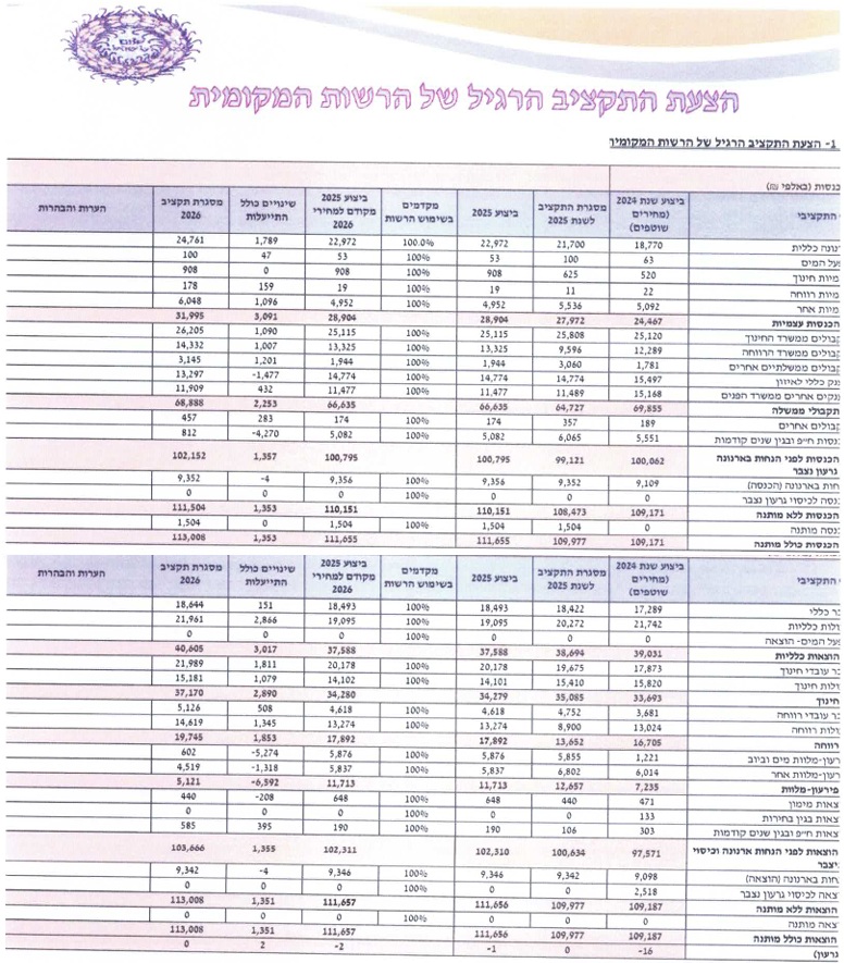 5. תקציב המתנ"ס ללא אישור ניהול תקין: בתקציב ראש תקציב למתנ"ס למרות שלעמותה המפעילה אותו אין אישור ניהול תקין לשנת 2026.