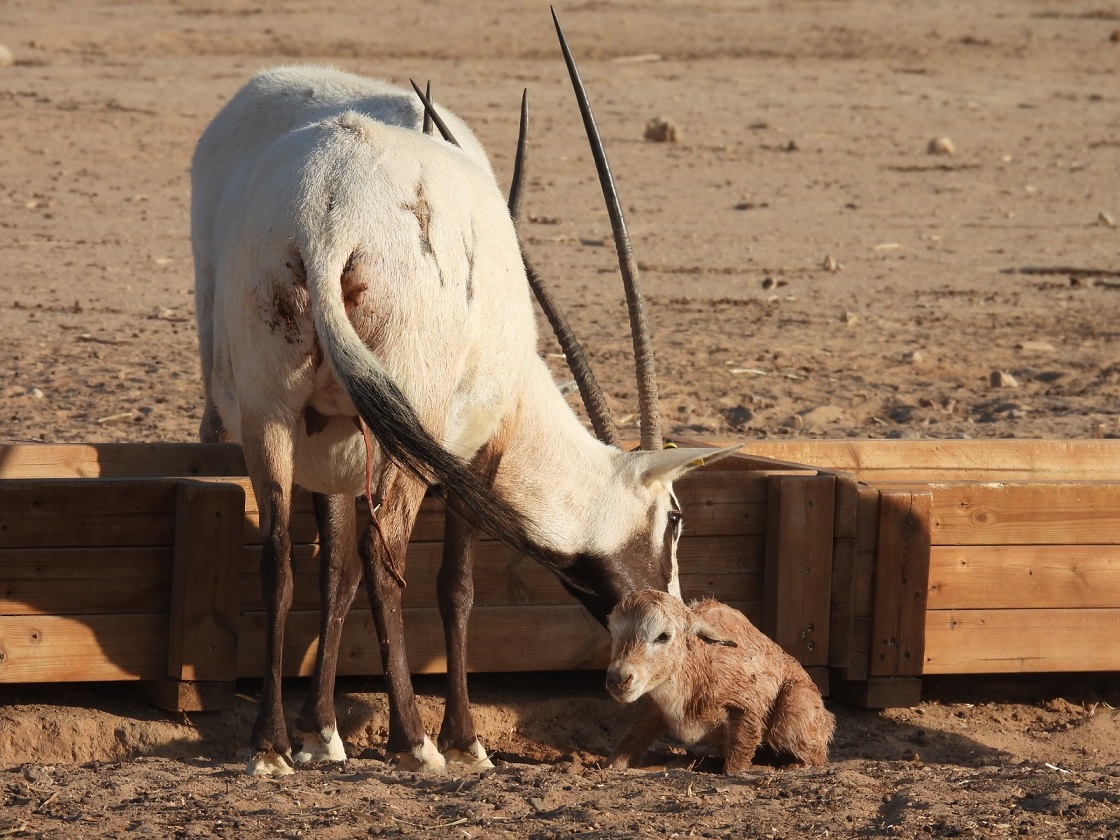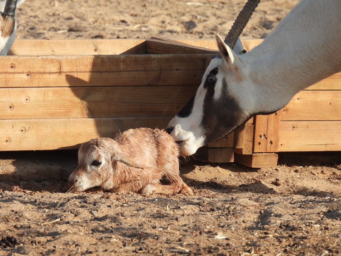 ליקוק ראשון של אמא לאחר ההמלטה, אמש הסתיימו להם כ-8 חודשי הריון ונקבת הראם הלבן המליטה באור יום עגל של ראם לבן, זהו הראם השביעי שנולד בשמורת הטבע חי בר יוטבתה שמשמשת גרעין רבייה לראמים.