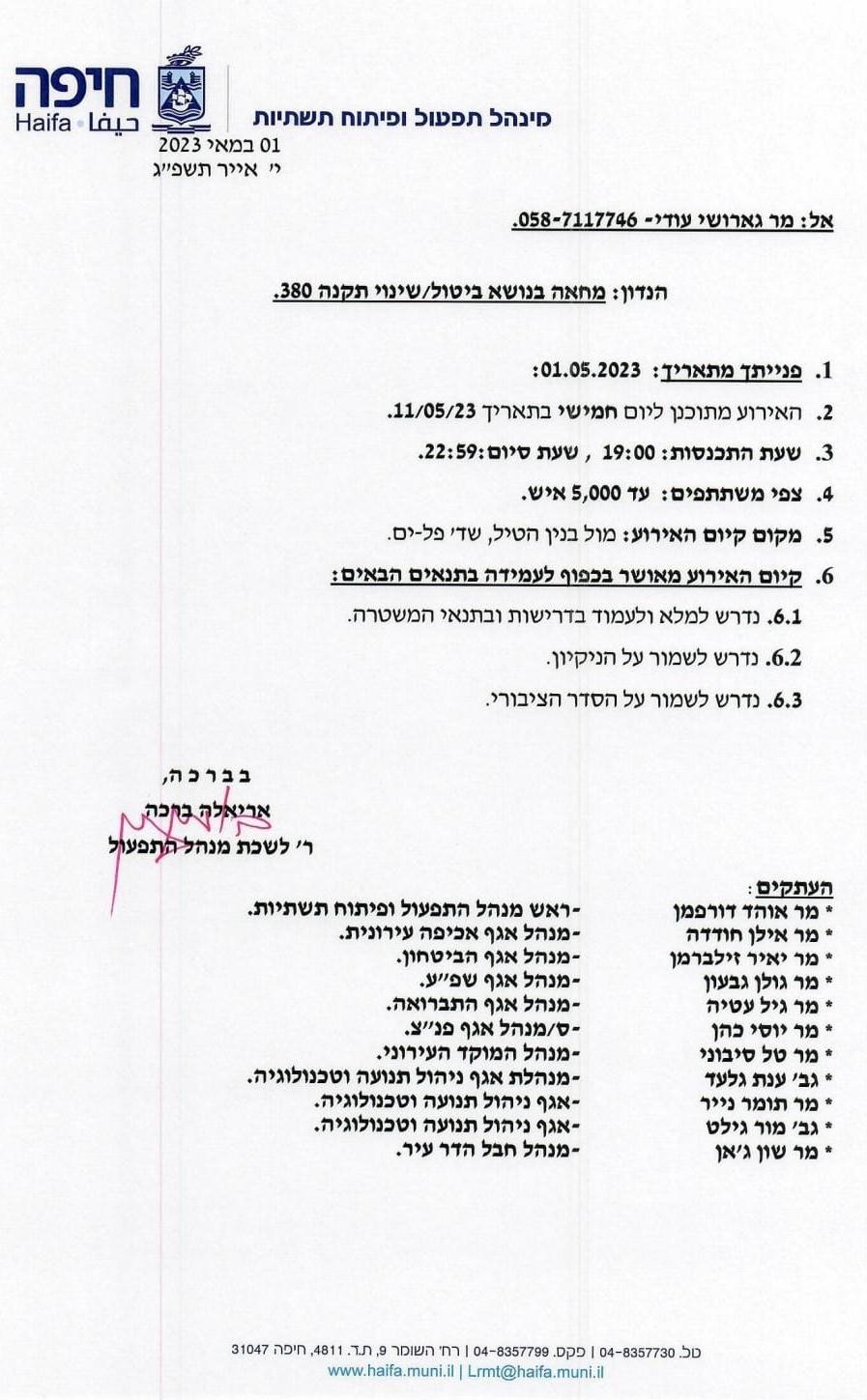 מלחמתם של בעלי הרכב המשופר והתעקשותם להפגין, בדרישה לתיקון החוק בתקנה 380, מינהל תפעול ופיתוח תשתיות אישרו לקבוצת עדי ג'רושי להפגין בדרישה לביטול תקנה 380 לרכבים המשופרים, ההפגנה תתקיים ביום חמישי 11-5-2023 בשעה 19:00 מול בניין הטיל, שדרות פל ים, חיפה.