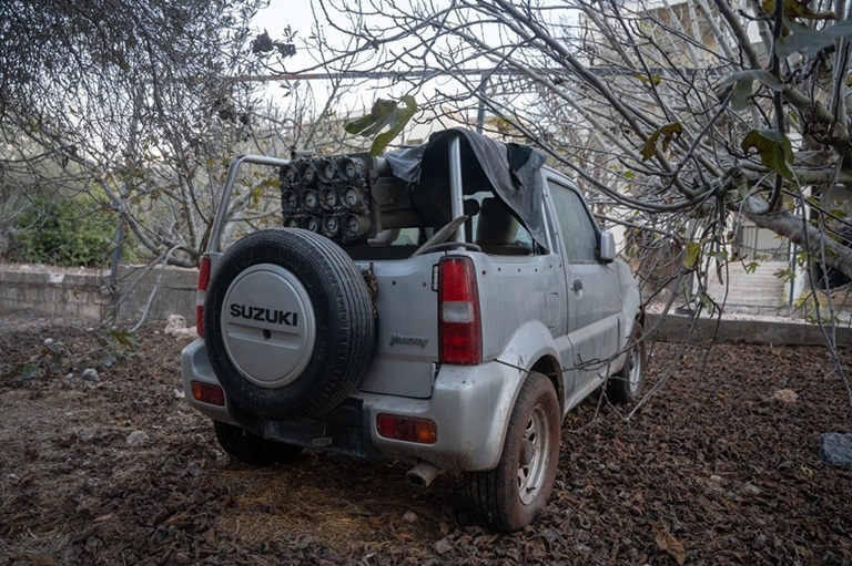 תיעוד של הרכב עם משגר הרקטות שאותר בחצר בית מגורים: קישור