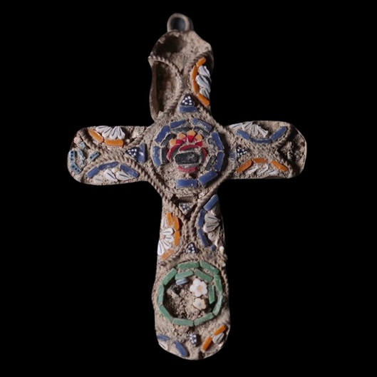 הממצא, תליון צלב מרהיב עשוי בטכניקת מיקרו-מוזאיקה (פסיפס זעיר), נבדק על ידי ד"ר עמית ראם, ארכיאולוג מרחב ירושלים ברשות העתיקות. "תליון הצלב אמנם אינו נחשב עתיק לפי החוק משום שהוא כבן 200-100 שנה בלבד, אך מדובר בחפץ מיוחד ומרהיב עין. הטכניקה שבה נעשה התליון, היא מלאכת מחשבת הכוללת שיבוץ זכוכיות ואבנים יקרות זעירות וצבעוניות, המונחות בקפדנות ויוצרים דגמים מיניאטוריים. טכניקה זו התפתחה ברומא סביב שנת 1800, ואולי גם קודם לכן, והמשיכה עד תחילת המאה העשרים. "מעבר ליופי שלו, החשיבות של התליון טמונה במיקום שבו נמצא, עין כרם, שהיא אתר חשוב מאוד לנצרות".