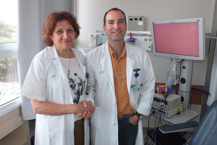 בצילום – ד"ר יניר ופרופ' דואק במחלקת א.א.ג בכרמל - צילום אלי דדון
