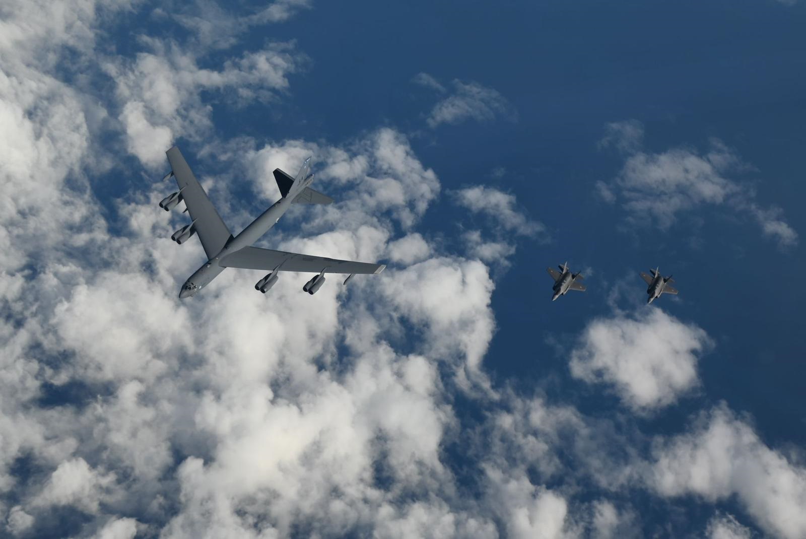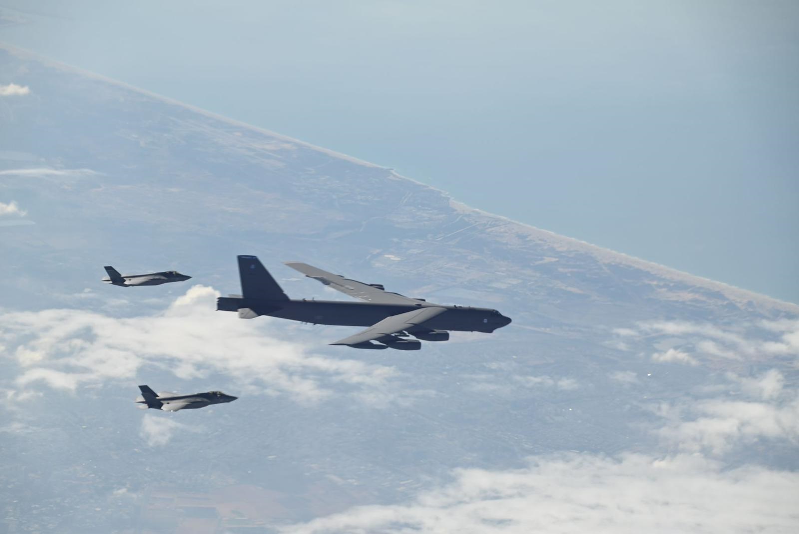 מטוסי אדיר ישראלים מלווים מפציצים אמריקאים בחזרה מהמפרץ, שני מטוסי קרב מסוג אדיר F-35i ליוו שני מפציצים אמריקאים מדגם B-52, אשר חצו את שמי מדינת ישראל בדרכם מהמפרץ. סרטון ותמונות.