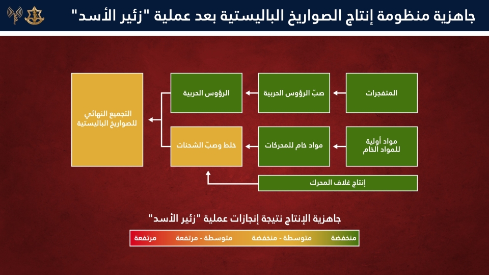 פגיעה במערך הטילים הבליסטים: גרפקיה המציגה את כשירות מערך ייצור הטילים הבליסטיים האיראני: