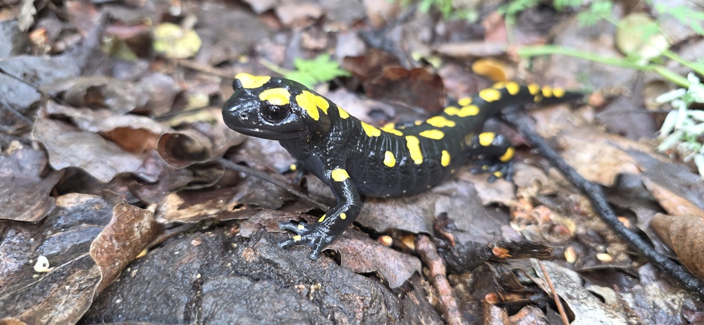 הסלמנדרה הופיעה בשמורת הטבע בניאס לאחר הגשם, תצפית בוקר משמחת של סלמנדרות הייתה היום למנהל שמורת הטבע בניאס עופר שנער בסיור פתיחת האתר, צבע הסלמנדרה שחור ועל הגב, הראש והזנב מפוזרים כתמים בצבע צהב או כתום, בסידור שונה אצל כל פרט.
