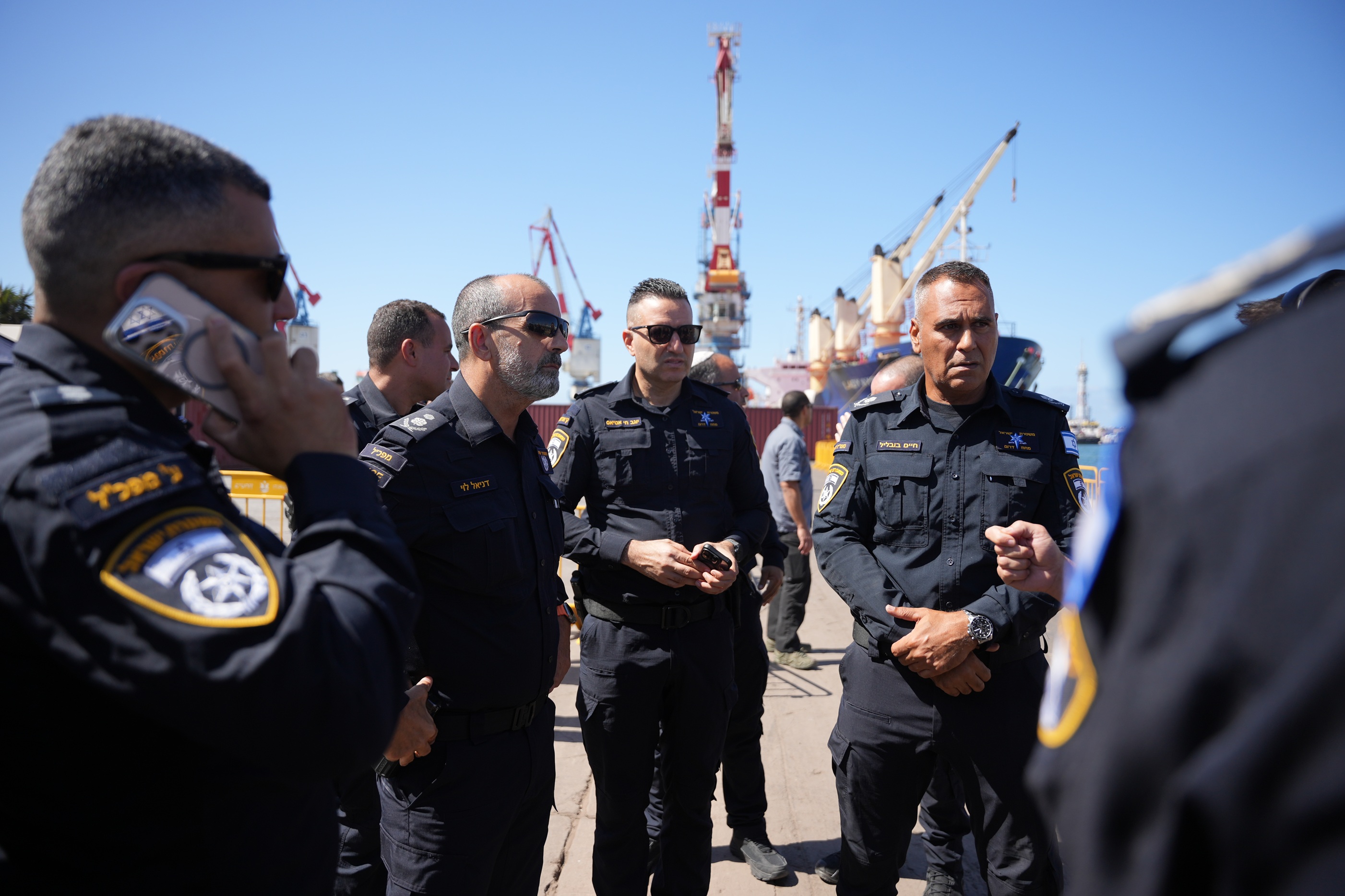 מפכ״ל המשטרה, רנ״צ דני לוי, הגיע לחפ״ק בנמל אשדוד, עמד מקרוב אחר ההיערכות המשטרתית במבצע וליווה אותו לאורך היום.
