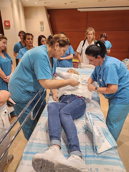 "כבר מתחילת המלחמה התחלנו להעביר הכשרות שונות בקרב הצוות הסיעודי", מסבירה גילה היימס, מנהלת הסיעוד ברמב"ם, המשמשת גם כמנהלת המרכז ללימודי טראומה, רפואה דחופה ואר"ן בבית החולים, "ההבנה שתרחיש דומה לזה שקרה בדרום יכול לקרות גם בצפון, הניעה אותנו להגדיל את כמות אנשי הצוות שיוכלו לסייע באספקטים שונים של טיפול בפצועי טראומה בהיקף גדול, במידה ונדרש לכך. צוות סיעודי העובד בפנימיות, יולדות, אונקולוגיה וכו', מחזיק במיומנויות שונות מאשר אלו העובדים בטראומה וכירורגיה. ממש כפי שרופא עיניים ואורתופד עושים עבודה רפואית שונה. ההכשרות שאנחנו מבצעים בשבועות האחרונים, מסייעות לנו בקידום המשימה".