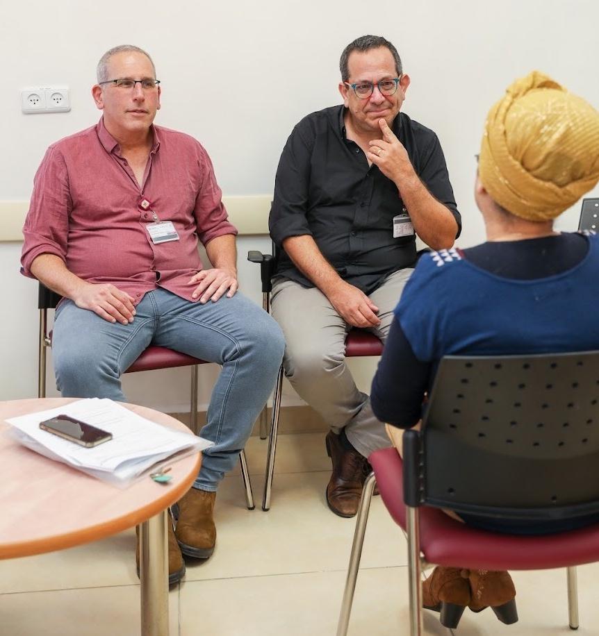 בתמונה: ד"ר אייל פרוכטר, מנהל אגף בריאות הנפש ברמב"ם מימין, ולידו אבי לוי - מנהל המחלקה לעבודה סוציאלית בחטיבה הפסיכיאטרית ברמב"ם.