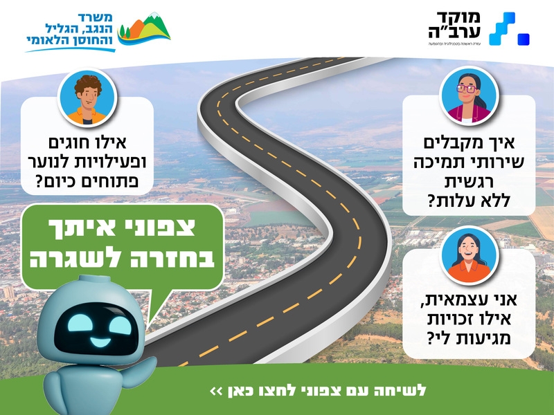 משרד הנגב, הגליל והחוסן הלאומי בשיתוף ענף ההייטק משיקים את "צפוני", סוכן חכם מבוסס AI למען תושבי הצפון ורשויות קו העימות, "צפוני" מהווה כתובת אחת לקבלת מידע חיוני בנושאי מיצוי זכויות, תעסוקה, חינוך ושירותי חוסן, בלחיצת כפתור ובזמינות מלאה, במיוחד עבור תושבי קו העימות השבים לשגרה בתקופה זו.