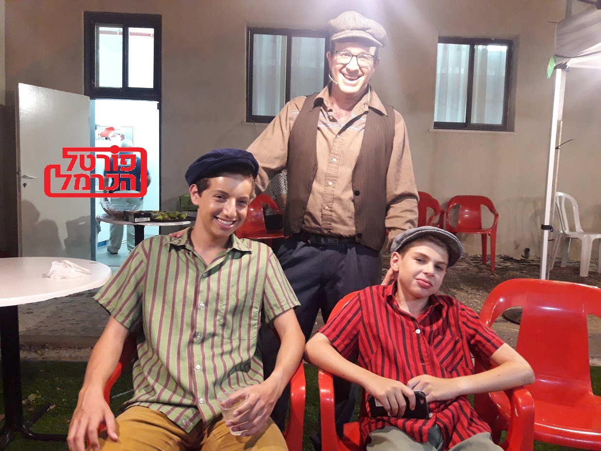 השילוב בין חינוך למשחק בין כל הגילאים והמקצועות, בתמונה מופיע המחנך דורון ארז והתלמידים נעמן ברקאי וגל דגן, שמשחקים בהצגה המיוחדת בוסתן ספרדי, להיות ישראלי ולהכיר את האחר, תמונה רגע לפני ההצגה.