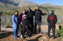 תמונה של תלמידי כיתה ב' מבית ספר יסודי אלסביל בדאלית אל כרמל שנפגשו עם המשוררת אמאל אבו פארס, ושמעו ממנה סיפורים שהיא כתבה.