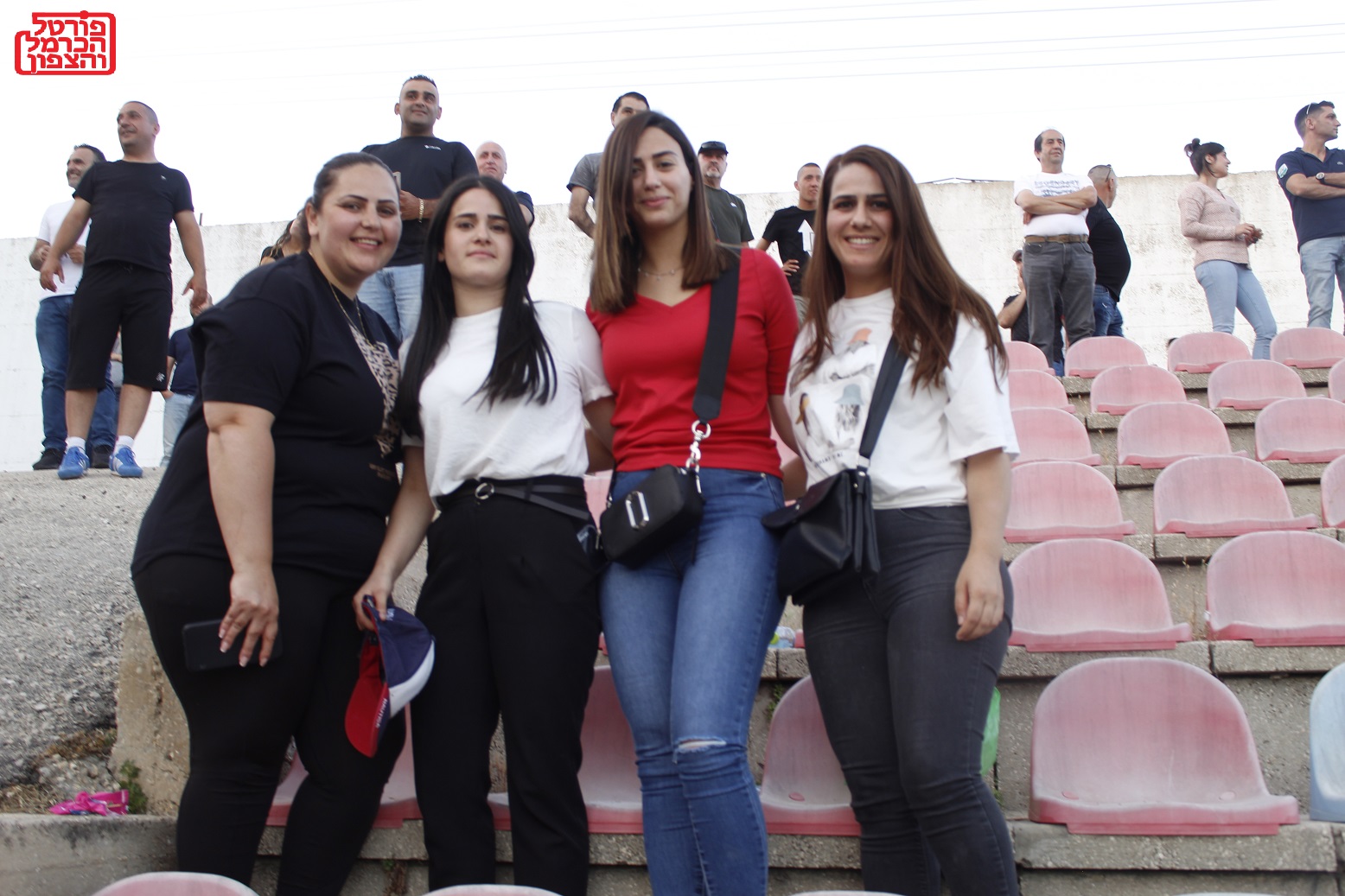 בתמונה אכלאס חלבי, לוזאן חלבי, מנאל חסון, ובסמה חסון, שהגיעו למגרש לעודד את קבוצת הפועל דליה, שבה משחקים קרובי המשפחה שלהן.