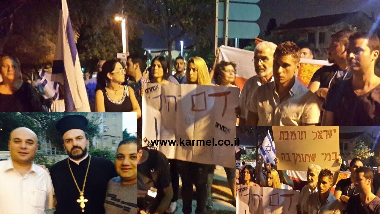 האב גבריאל נדאף יחד עם בני העדה הנוצרית בעצרת במושבה הגרמנית בחיפה הניפו את דגלי המדינה וקראו לעולם שלא לעמוד מנגד לרדיפת הנוצרים במזה"ת, בהפגנה לקחו חלק עטא פרחאת ואסואן אבו חמוד