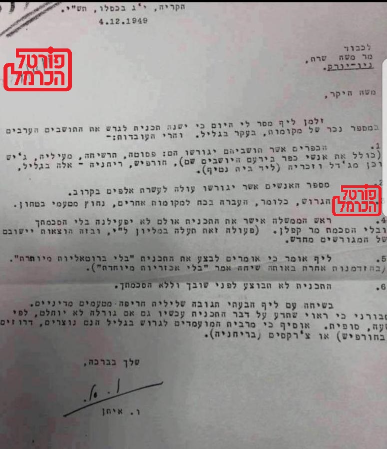 המסמך הזה מגיע ובו מובהרת בצורה פשוטה הכוונה, חורפיש יהיה אחד הכפרים המגורשים.