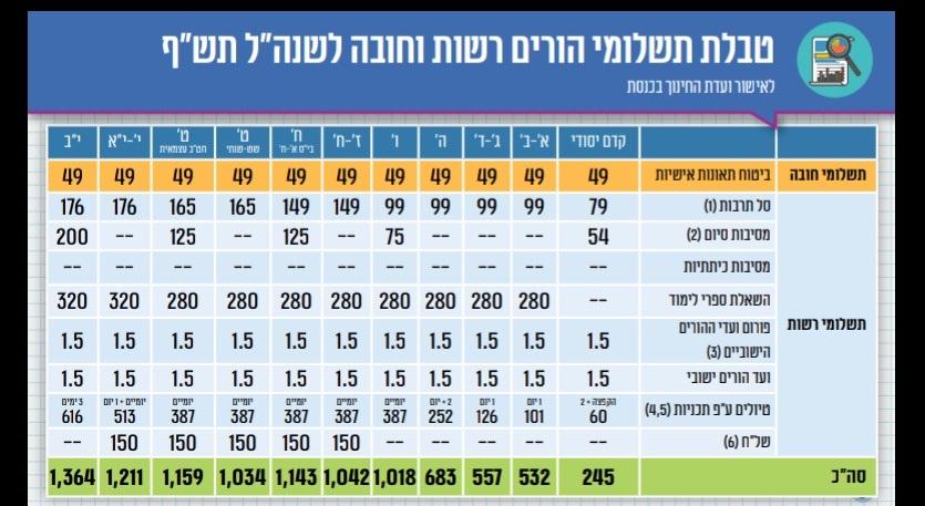 טבלת תשלומי ההורים אושרה במלואה