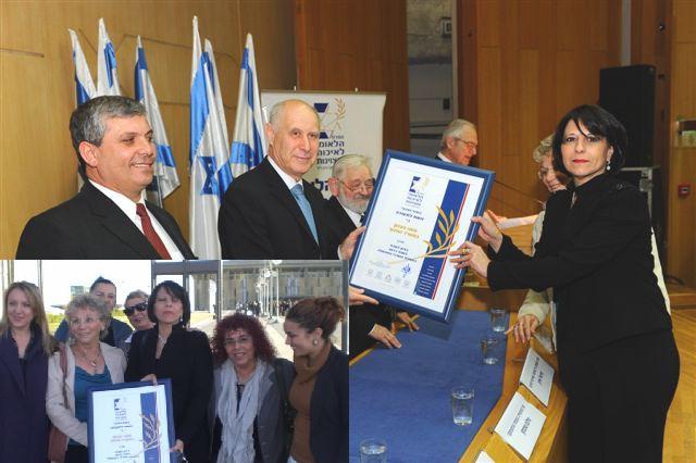 כך, ד'ר אורנה שמחון מנהלת המחוז, עם קבלת 'ציון לשבח' במסלול משרדי הממשלה במסגרת תחרות הפרס הלאומי לאיכות ומצוינות במגזר הציבורי ע'ש יצחק רבין ז'ל, לשנת 2011, במשכן כנסת ישראל .