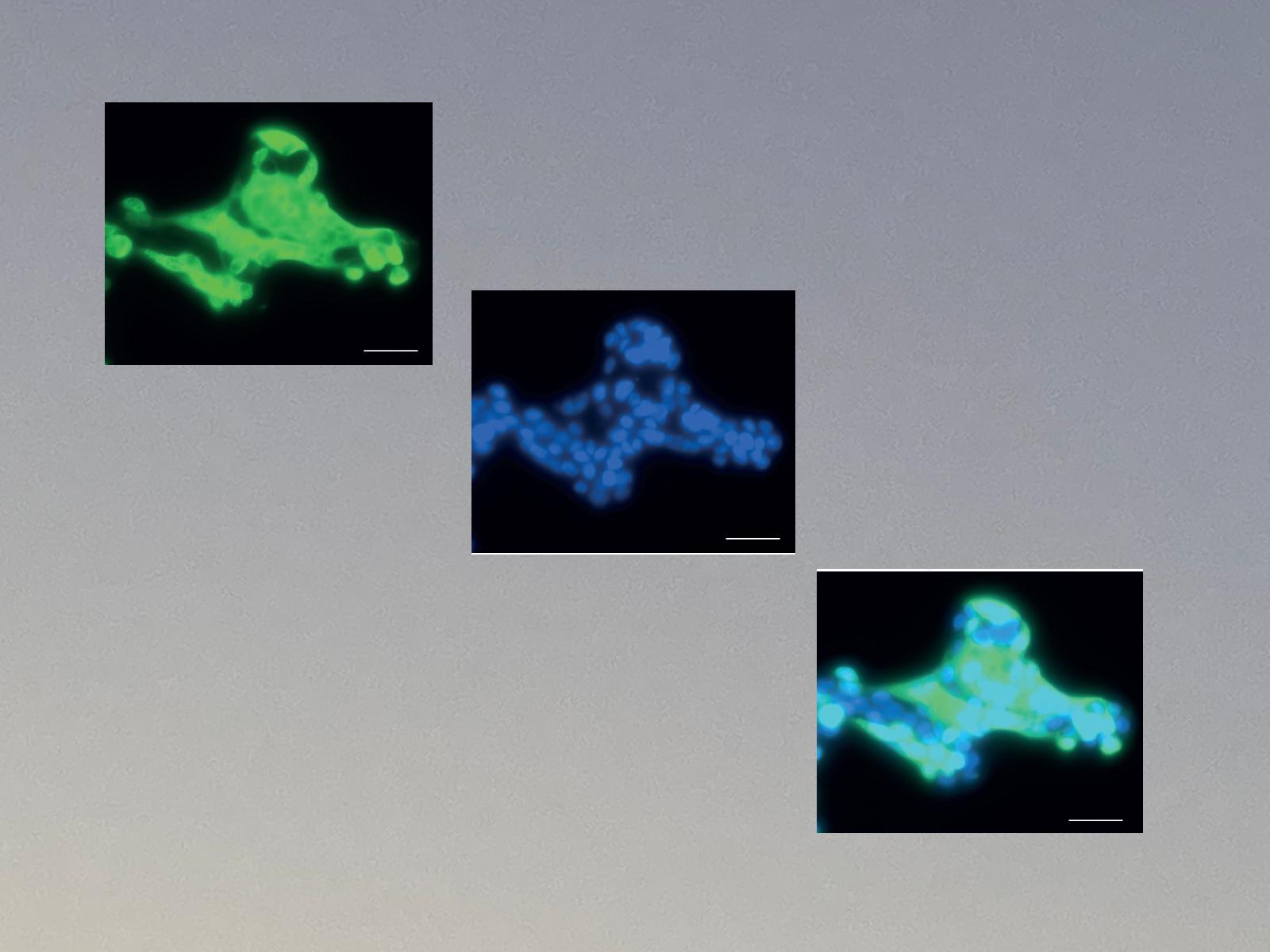 בתמונה: תאי ריאה אנושיים בתרבית שהודבקו בנגיף הקורונה. מסומנים בכחול. גרעיני התאים, בירוק. הנגיף, בטורקיז.