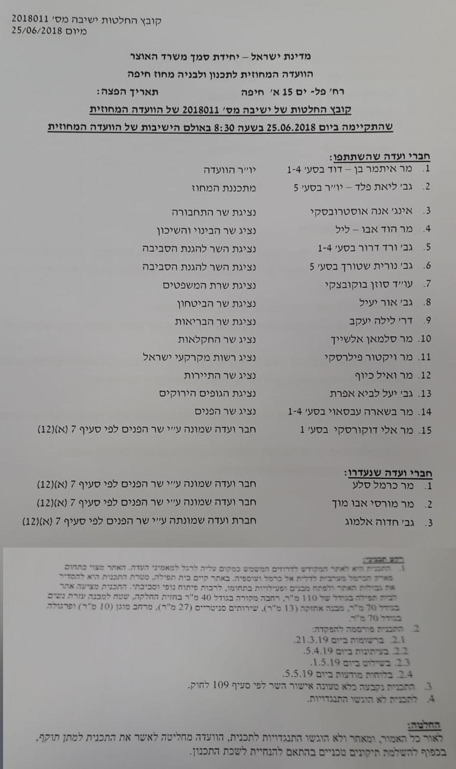 בהמשך לדיון הוועדה המחוזית לתכנון ובניה חיפה ביום ה25/6/2018 שאישרה את תוכנית מזאר סת ח'דרה בכרמל , וועדת המשנה בוועדה המחוזית דנה ב10.7.19 בתוכנית ואישרה אותה סופית.