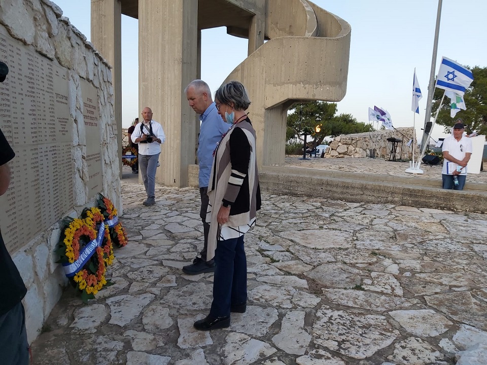 איציק חולבסקי ראש המועצה האזורית מגידו הניח את  זר המועצה עם מרים סדן אמו של ניב סדן ז"ל לוחם פלס"ר נח"ל מקיבוץ מגידו שנהרג בלבנון בינואר 1997.