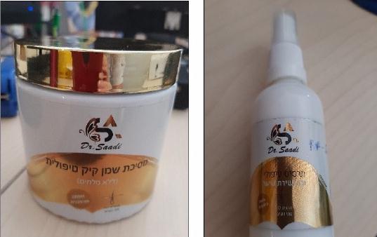 סירום טיפולי תמצית צמחים לשיער, תרסיס טיפולי נגד נשירת שיער, שמפו טיפולי נגד נשירה, קרם עיניים עשיר, קרם הבהרה ומסיכת שמן קיק טיפולית, אשר נתפסו במסגרת ביקורת שנערכה על ידי משרד הבריאות במרפאה בעראבה.