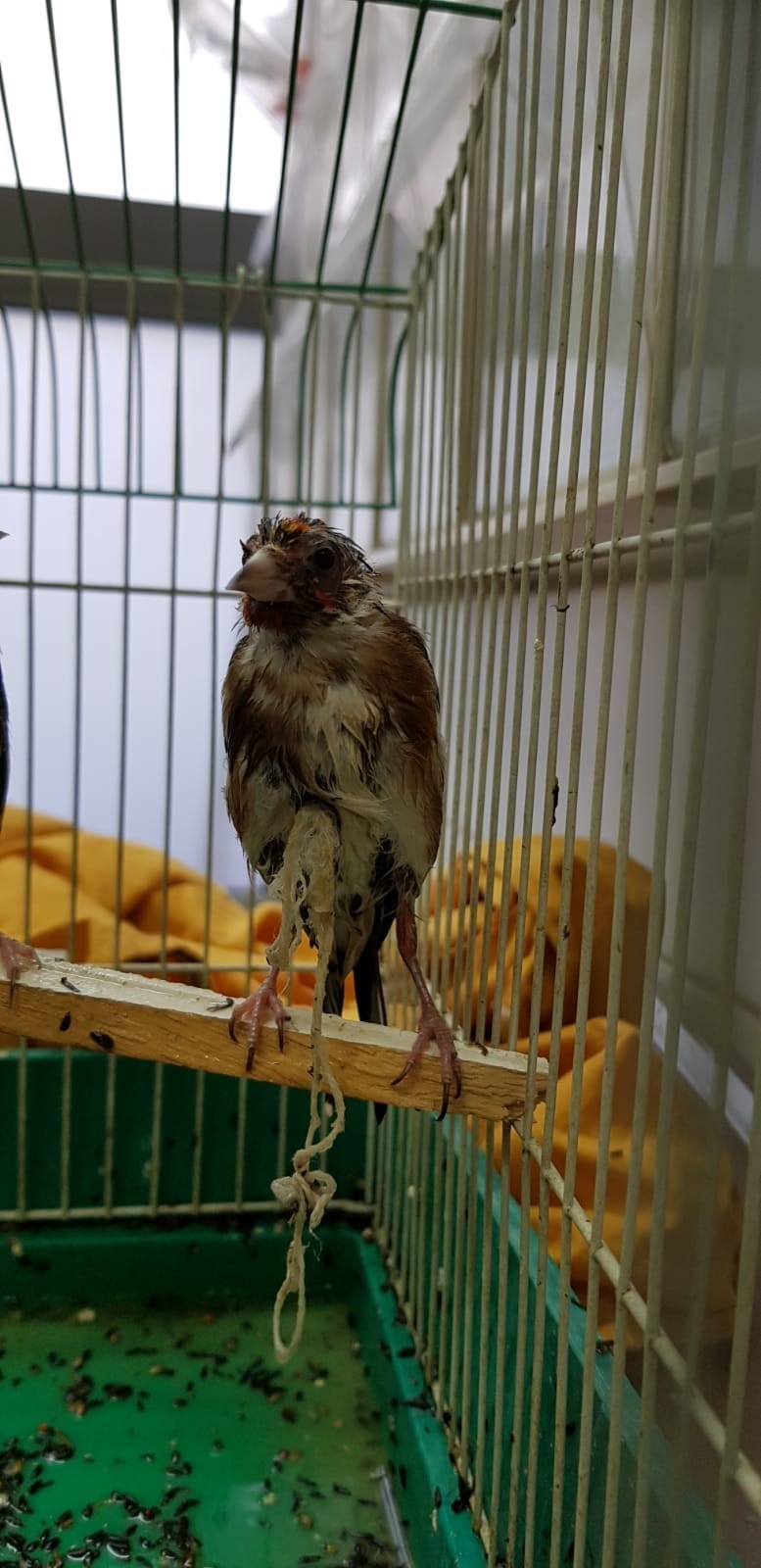 הבלשים הבחינו במטבח הדירה מעל המקרר בכלוב בו מוחזקות זוג ציפורי שיר מסוג חוחית האסורות בהחזקה,סחר וצייד כשהן מוזנחות ובמצב של התעללות כשלרגליהן קשורים חוטים.
