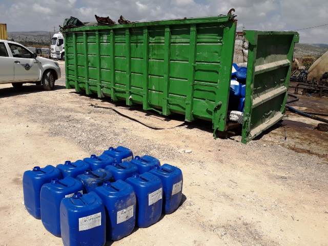 במהלך הפעילות, נמצאו כחצי טון חומצה גופרתית בריכוז של 98% לצד מכלים ריקים שהכילו בעבר חומצה גופרתית, אשר שימשה ככל הנראה לתהליך הטיפול בשמן.