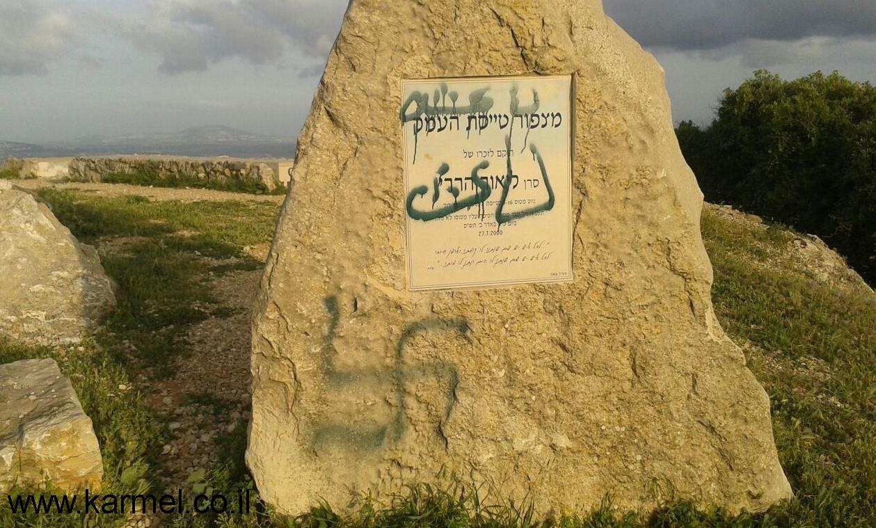 צלב קרס וכתובות דאע"ש על אנדרטת טייסת העמק