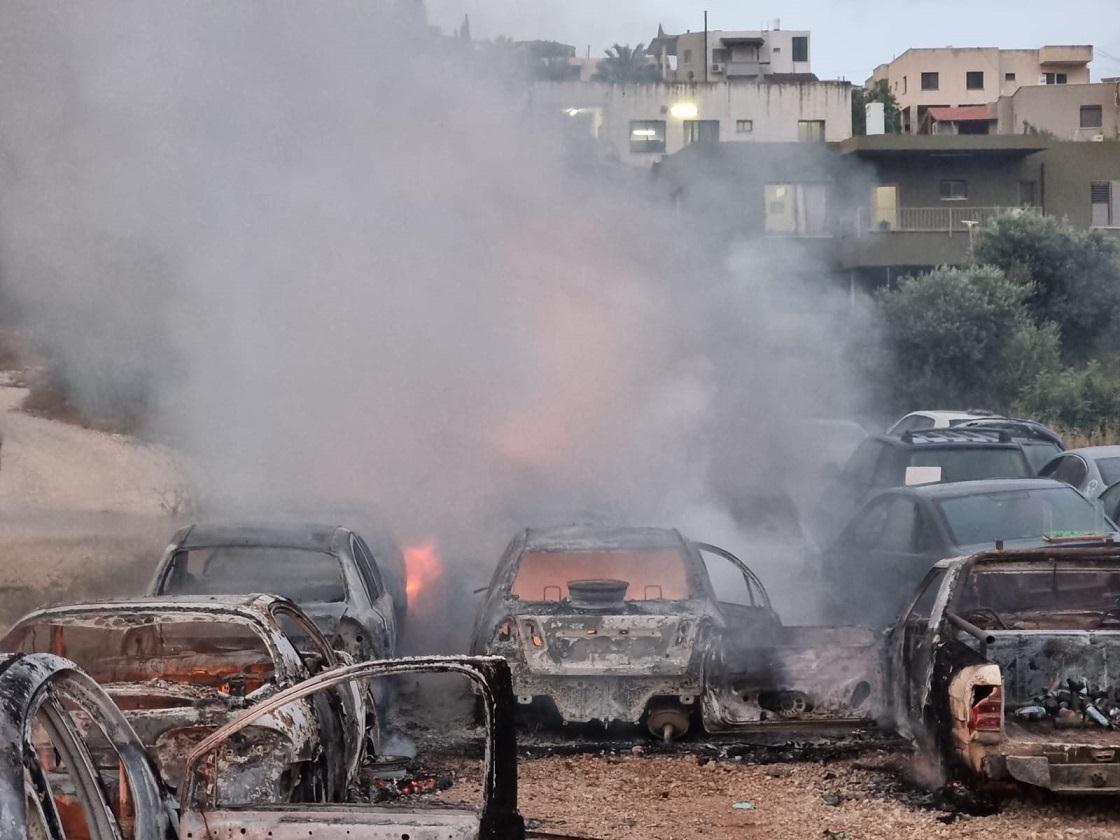 שריפה במגרש לפירוק רכבים בירכא