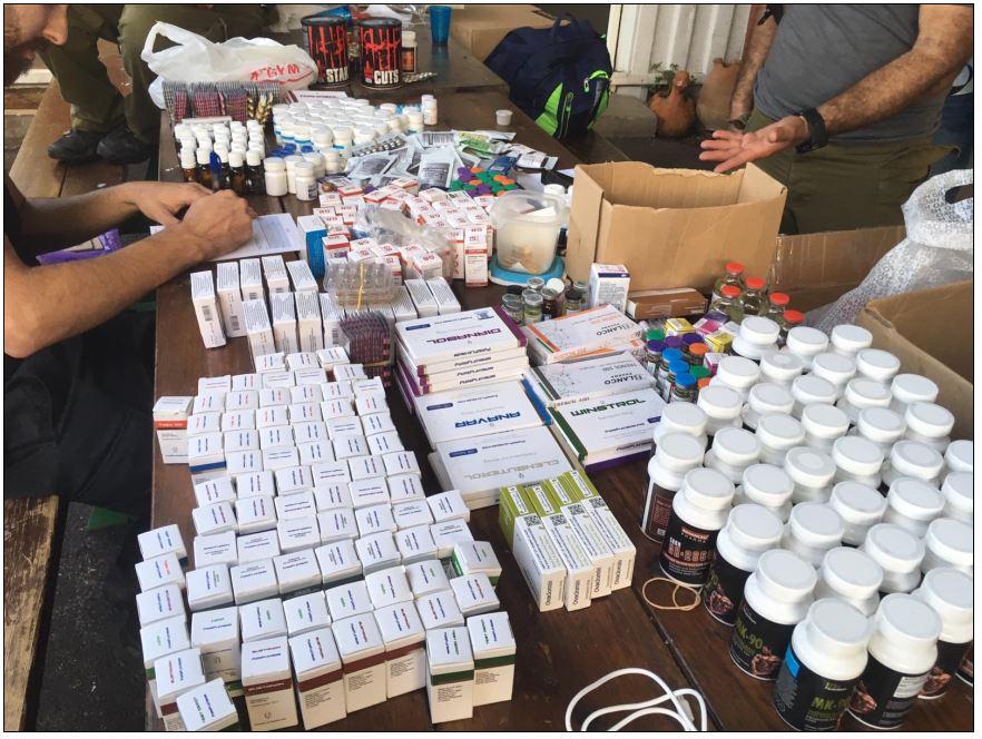 כמו כן נתפסו גם תרופות מרשם מסוגים שונים המשמשים בדרך כלל מפתחי גוף העושים בהם שימוש לרעה.