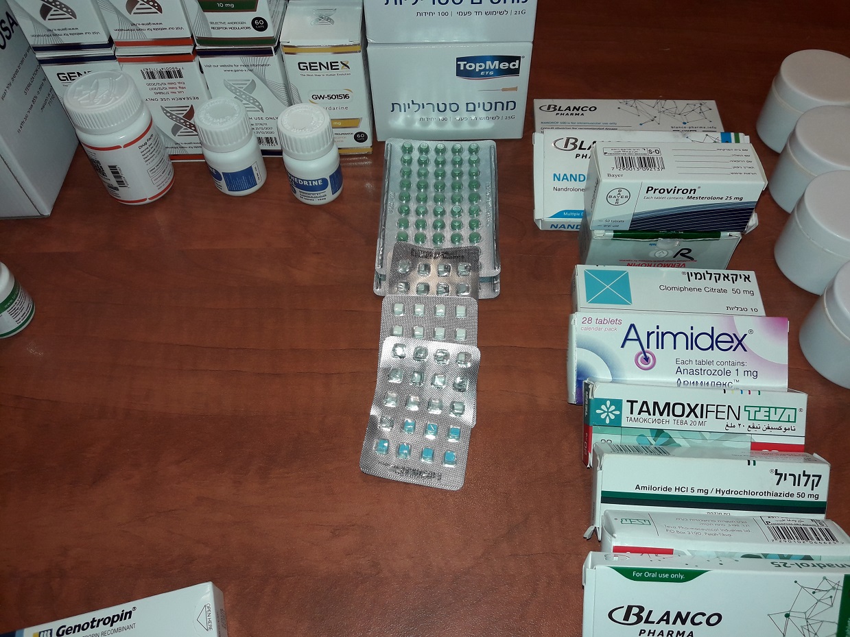 נתפסו אריזות של תרופות מרשם שמקורם לא ידוע, בכללם זריקות של הורמוני גדילה שככל הנראה הוברחו מחו"ל ומשמשות מפתחי גוף באופן לא חוקי.