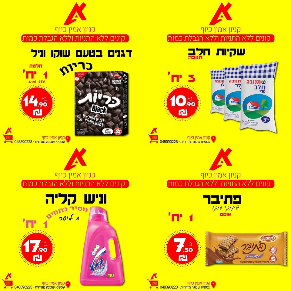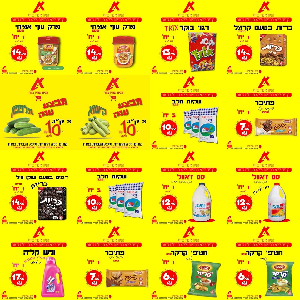 אין דברים כאלה, מחיר שאין לו מתחרה קונים ללא הגבלות וללא התניות, קניון אמין כיוף עוספיה מזמין אתכם לעשות השוואת מחירים, להגיע לקנות ולחסוך מאות ש"ח בכל קניה.
