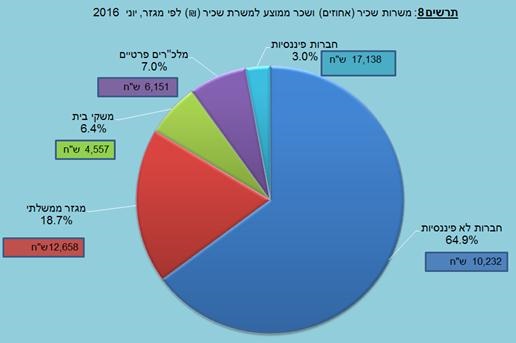 בחודש יוני 2016 המגזר הגדול ביותר היה מגזר החברות הלא-פיננסיות, ובו היו 2.286 מיליון משרות שכיר (64.9% מכלל משרות השכיר במשק). השכר הממוצע למשרת שכיר במגזר זה היה 10,232 ש"ח.