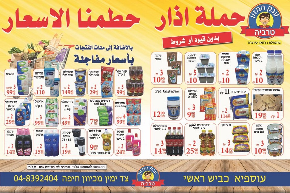 ענק המזון טרביה בהנהלת רואד טרביה, עוספיה כביש ראשי בכניסה המערבית, מבצעים מתחדשים כל יום.