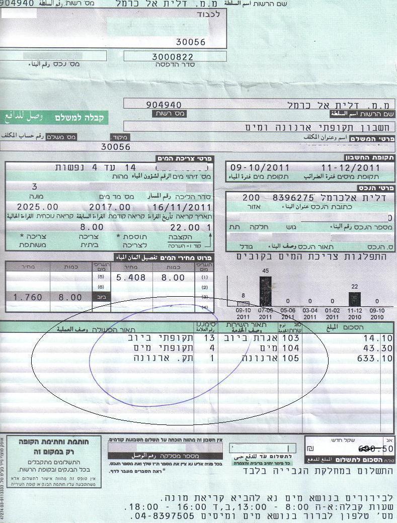 דוגמא ממועצת דאלית אל כרמל: הודעה בדבר הטלת ארנונה כללית לשנת מיסים 2013