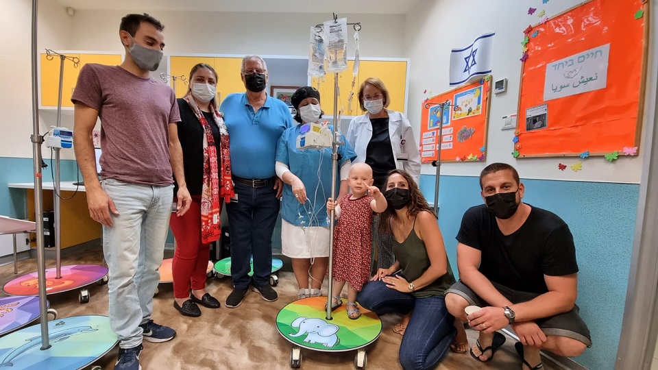 בתמונה למטה - מימין לשמאל - נופר ושמעון אמסלם, עם בתם תבל, ד"ר שפרה אש, מנהלת המערך ההמטו-אונקולוגי לילדים ברמב"ם, רותי אופיר, אחות אחראית במערך ההמטו-אונקולוגי לילדים בביה"ח, ברנרד שיווק, יו"ר עמותת להילחם ביחד ותומר פדאל, מעצב המוצר.