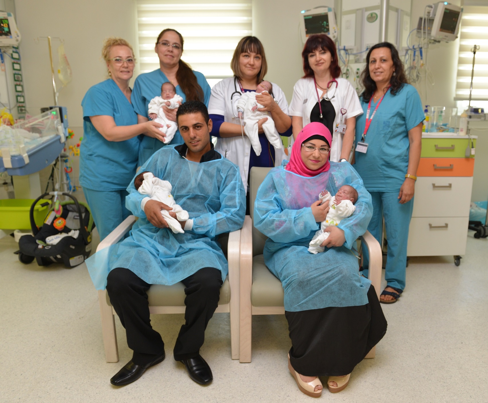 בפגייה של ביה"ח "רות" לילדים, שתי בנות מרביעיית התינוקות שנולדו בתחילת פברואר בביה"ח, שוחררו לביתן. מצבם של השניים האחרים, בן ובת, אשר יצאו מכלל סכנה, ממשיך להשתפר, והם מיועדים להשתחרר בשבועיים הקרובים, בהתאם לקצב התקדמותם. רגע לפני יציאת ההורים מביה"ח, עם הפעוטות, הצטלמה המשפחה המורחבת עם הרביעייה והצוות המטפל.