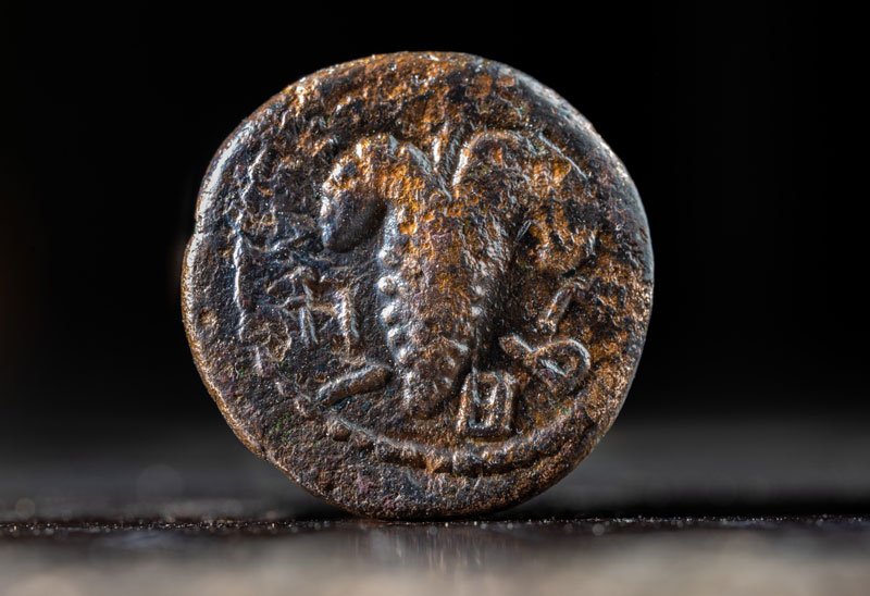 רשות העתיקות חושפת לציבור מטבע ברונזה נדיר מתקופת מרד בר כוכבא (סביב 132 לספירה), שהתגלה בין הר הבית לעיר דוד. צידו האחד של המטבע מעוטר באשכול ענבים ולצידו הכיתוב 'שב לחר ישראל' (שנה ב' לחירות ישראל) ומצדו השני מופיעים עץ תמר והכיתוב 'ירושלים'.