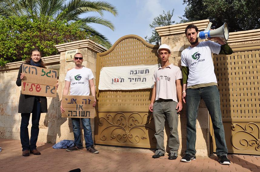 הארגונים קיימו מול ביתו של תשובה נגד העיסקה למכירת הגז הישראלי לחו"ל.