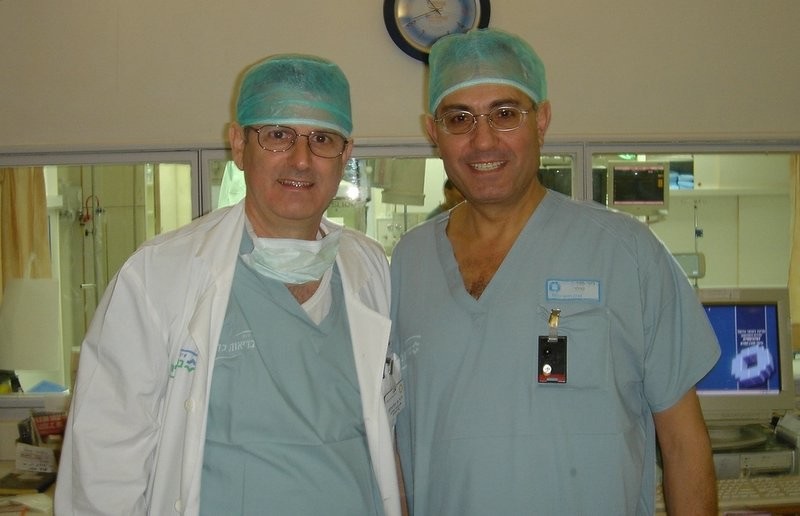 בצילום – ד"ר נאדר חאדר ופרופ' פליגלמן בחדר הצנתורים כרמל. צילום אלי דדון