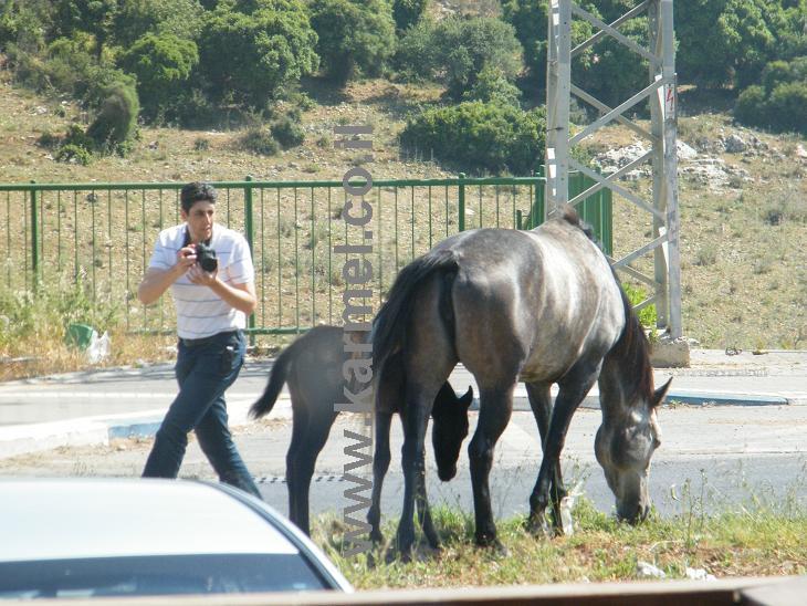 לא בכל יום רואים סוס וסייח באמצע האי תנועה אוכלים מהצמחייה שגדלה לה באי תנועה ברחובות דאלית אל כרמל ובינתיים עובדי המועצה נמצאים בחופשת החג.