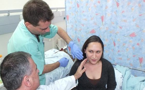 כך סיפרה הבוקר יוליה רוטשטיין, בת 30 מקיבוץ אפיק. כשיוליה הגיעה למרכז הרפואי ע"ש ברוך פדה פוריה, ד"ר רומן מירוצ'ניק בדק אותה ואיבחן שמדובר בתסמונת הנדירה, תסמונת הנשר - Eagle syndrome .